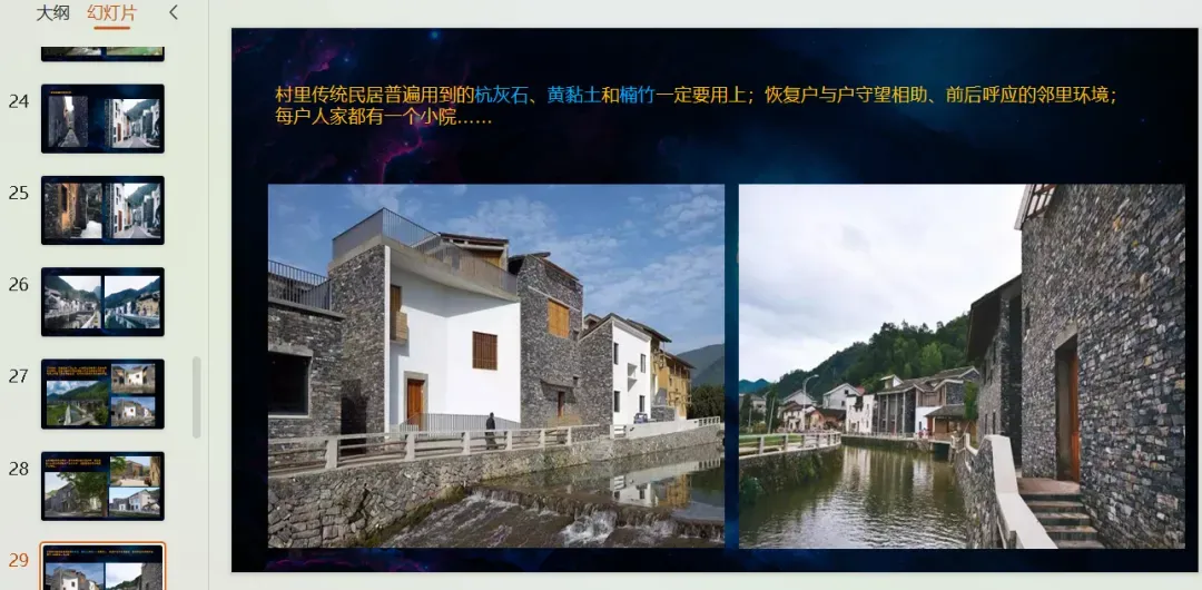 忘了别墅,找回古村的感觉。文村新村,不能和老村完全脱离,新村最理想的形态,就是像在老村上自然生长出来的一样。