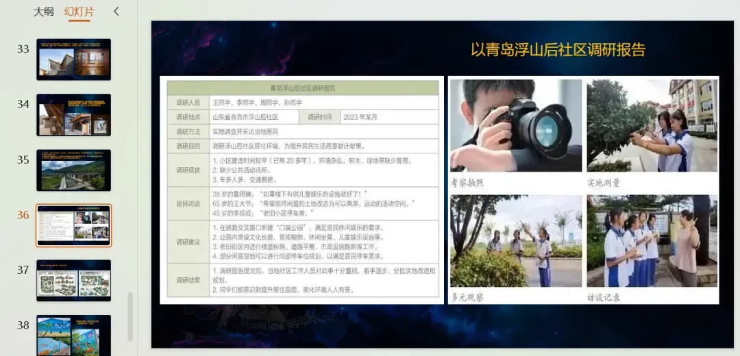 学生能开展自主探究,并对身边的公共空间环境进行实地考察,综合运用美术核心素养和跨学科知识撰写调研报告并解决环境问题。