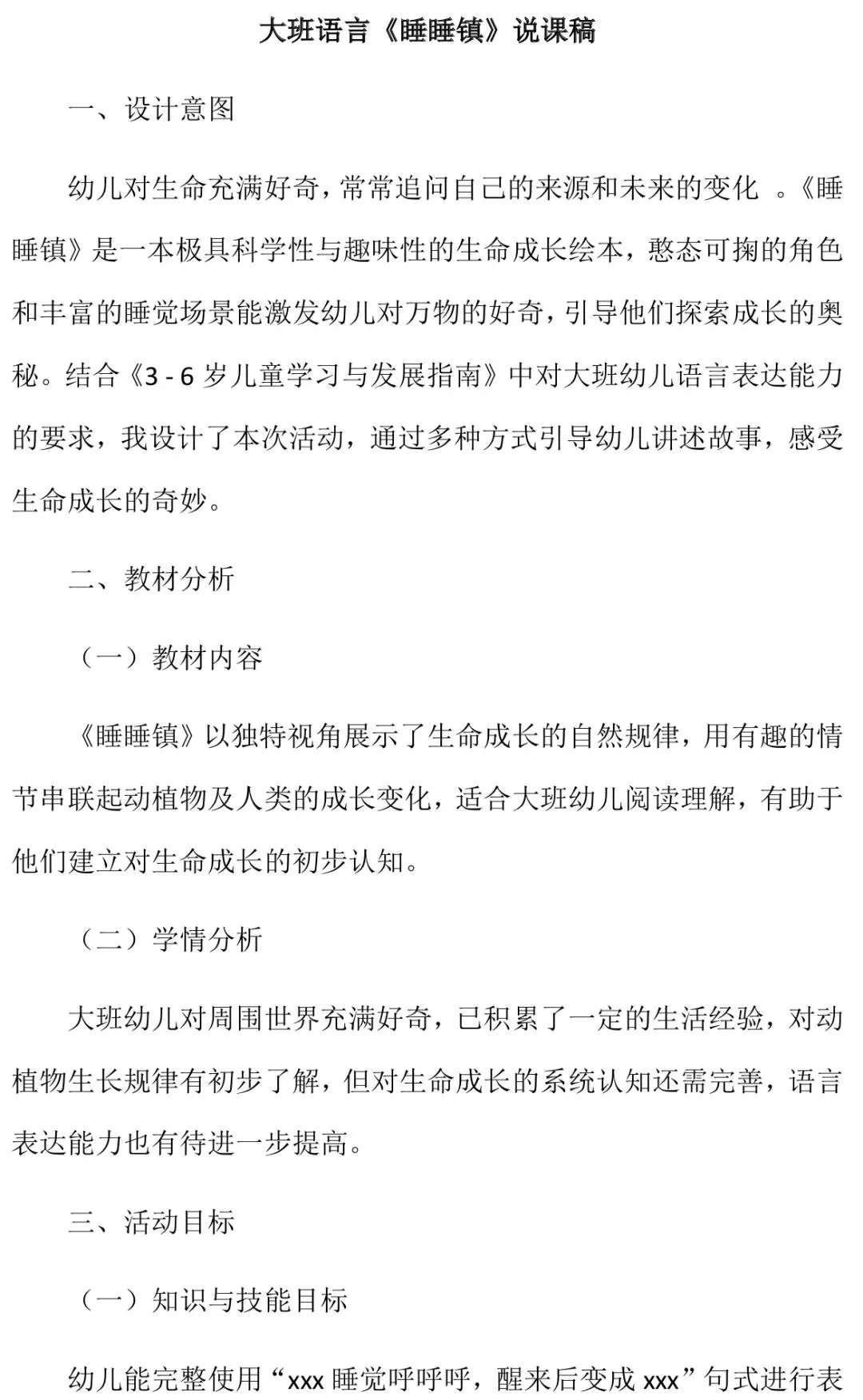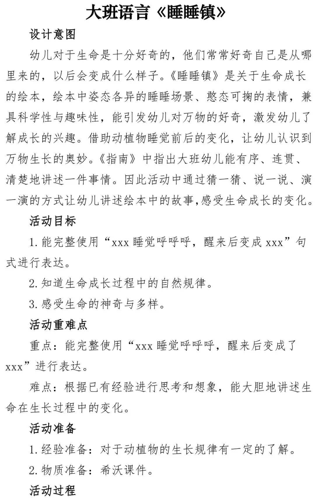 大班语言《睡睡镇》