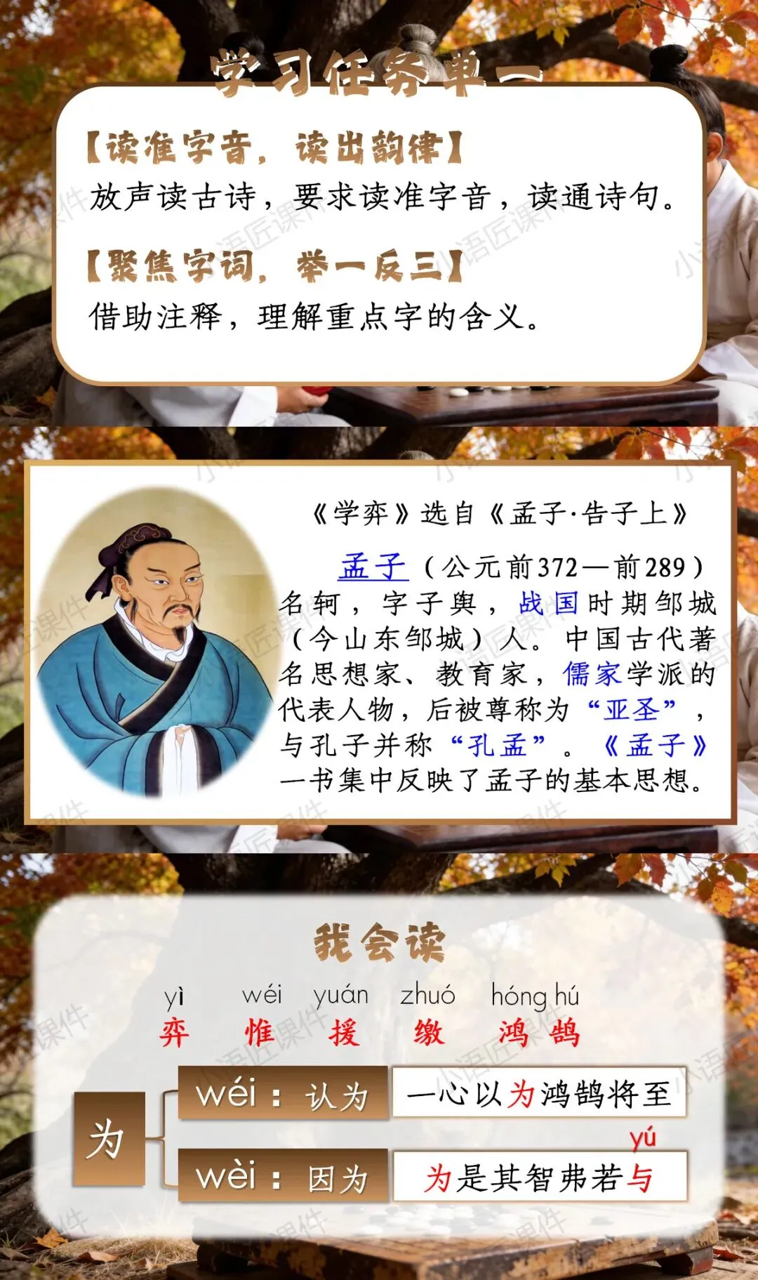 大家好,我是小语匠课件!今天给大家分享部编人教版六年级下册《学弈》的独家课件。(课件获取方式见文末)