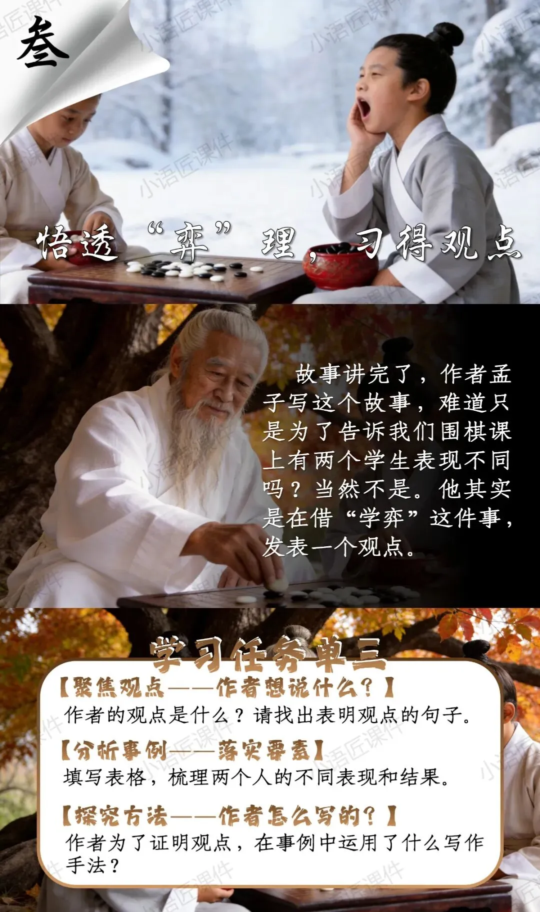 【六下课件】“弈秋棋落处,静者得真章”——《学弈》(视频+课件+教学设计)