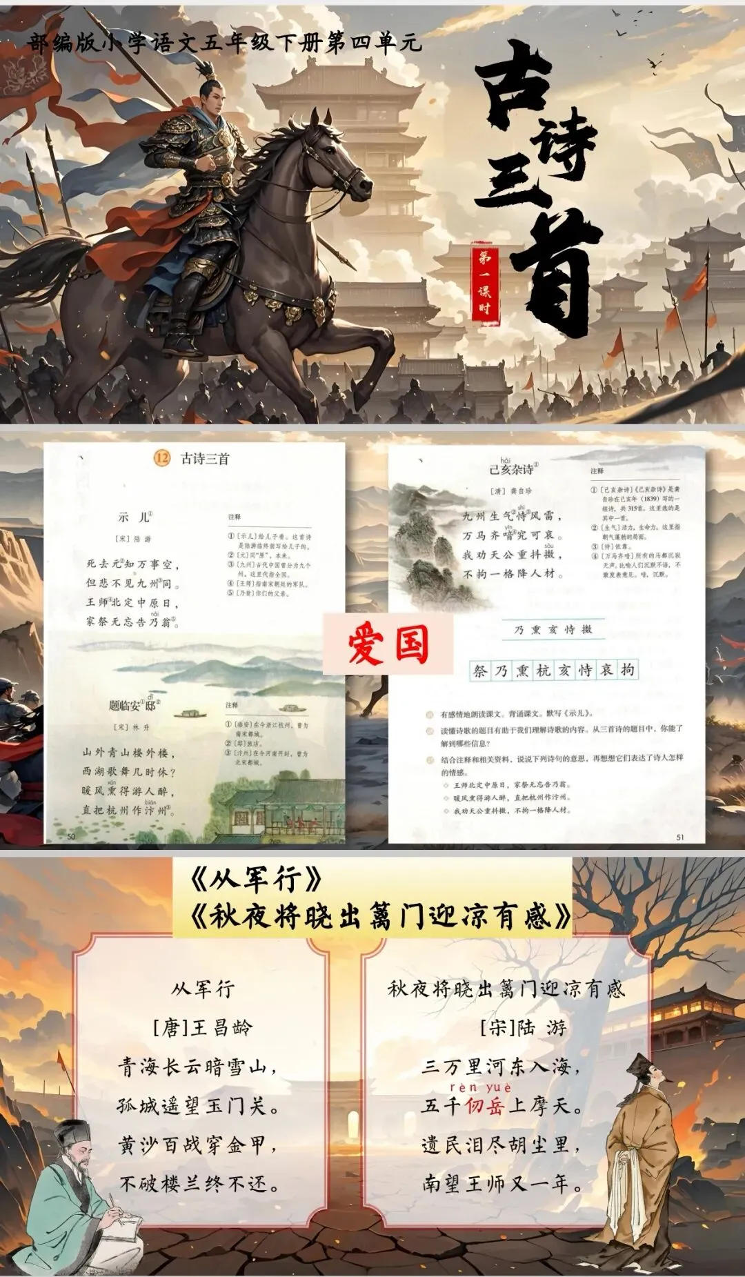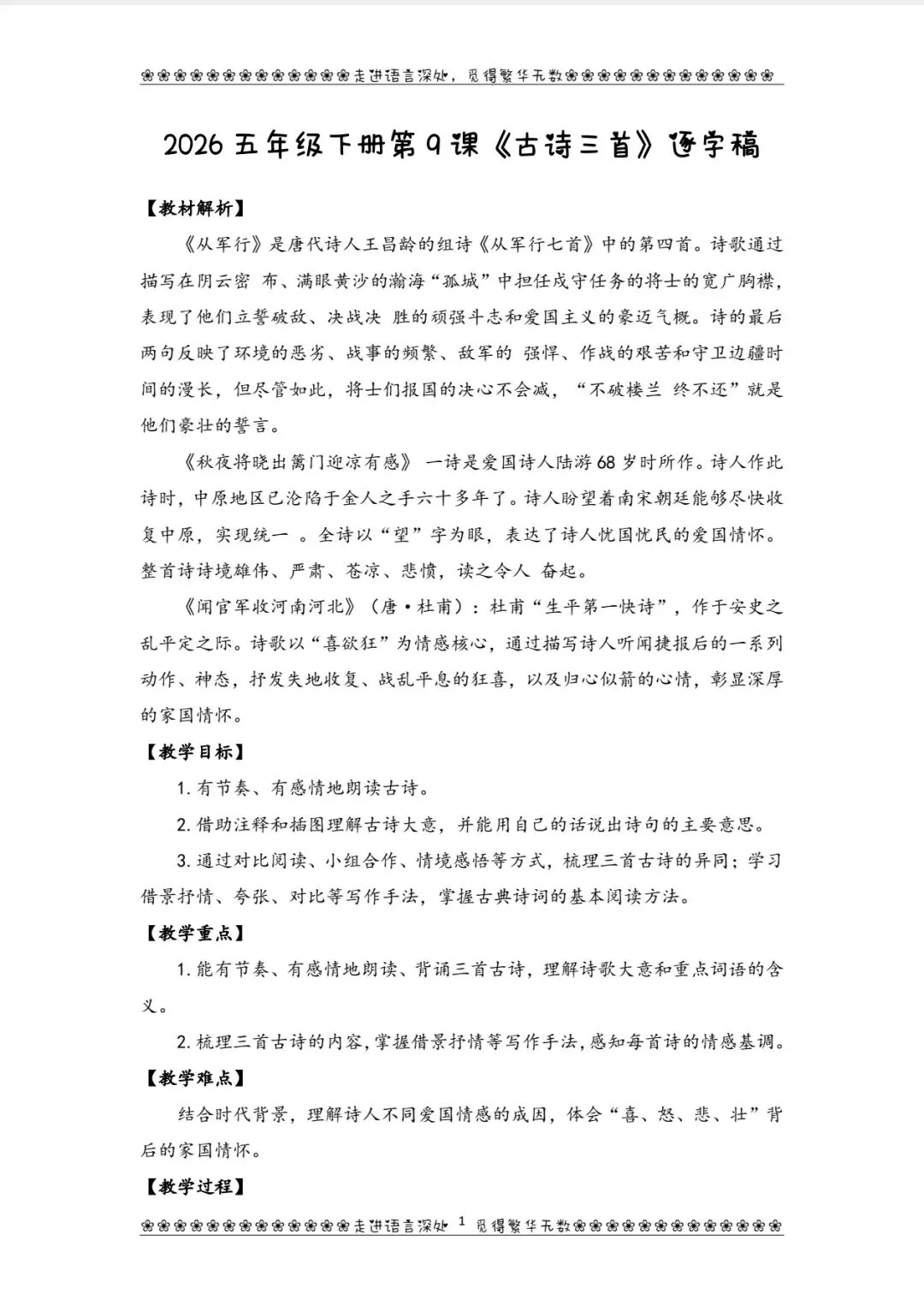 >五下第9课《古诗三首》课件@教案@逐字稿
