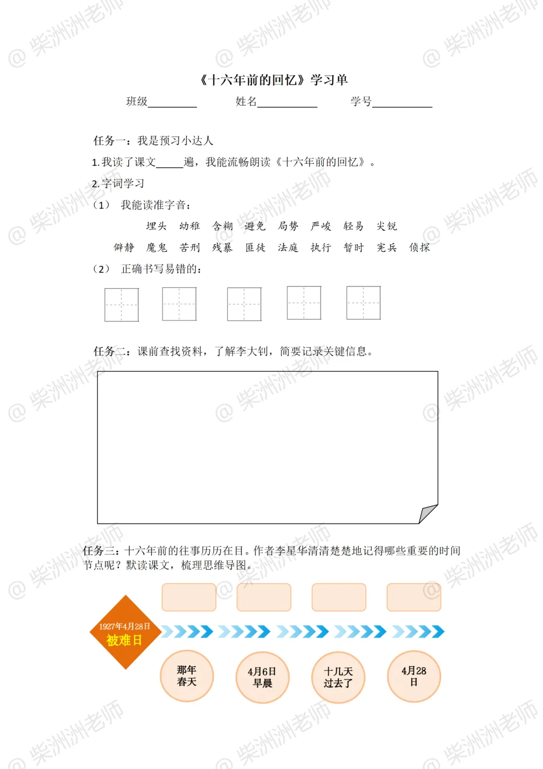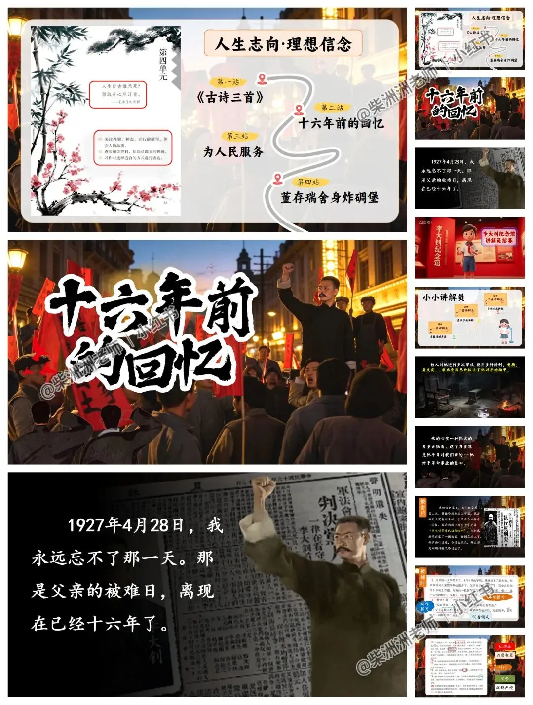 AI赋能!六下《十六年前的回忆》公开课课件+教案+学习单!革命故事讲解员