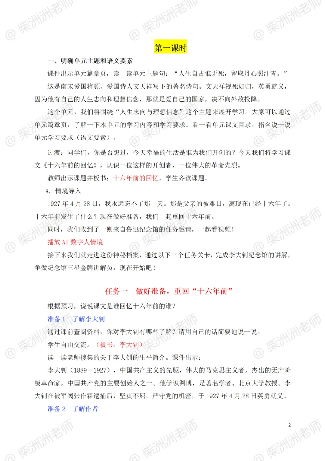 当我学会用AI做公开课I 《十六年前的回忆》课件+教案+学习单