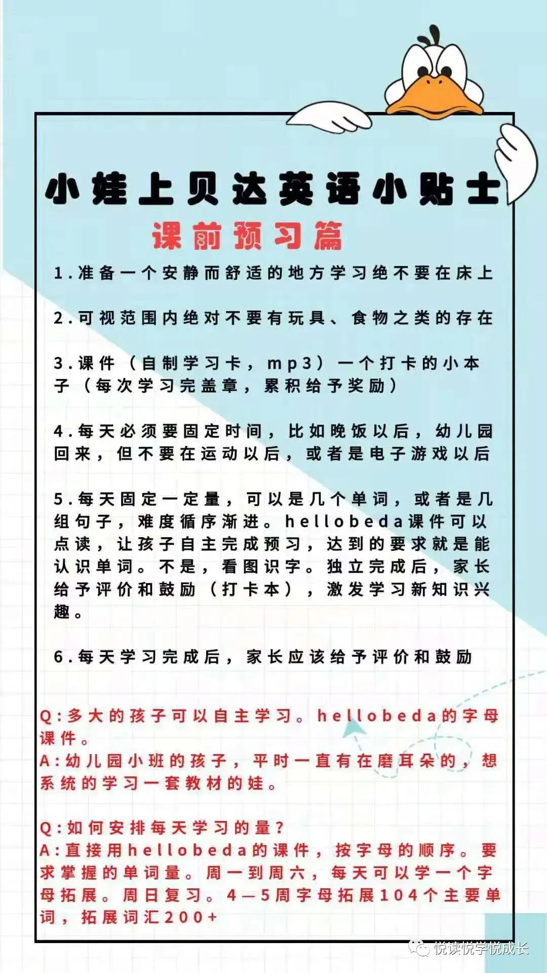 Hellobeda字母单词是很好的教材,许多上贝达的小伙伴都不知道。其中的字母课件制作精美,动画点读,配合配套的一对一外教课程,在家英语启蒙,自学,预习和复习都非常方便。那么英语启蒙阶段如何高效学习hello beda课程?其实无非就是三个环节:课前预习,上课引导及课后复习。