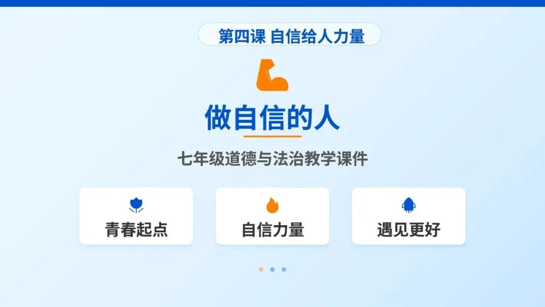 本课严格依据义务教育道德与法治课程标准(2022年版),立足七年级学生青春觉醒、自我探索的成长特点,以自信为核心主线,按照“感知自信—理解自信—践行自信—升华自信(中国自信)的逻辑递进展开。