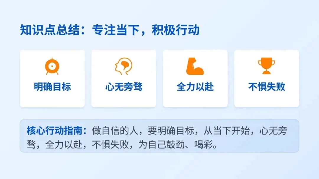 环节五:课堂小结+自信践行(5分钟)