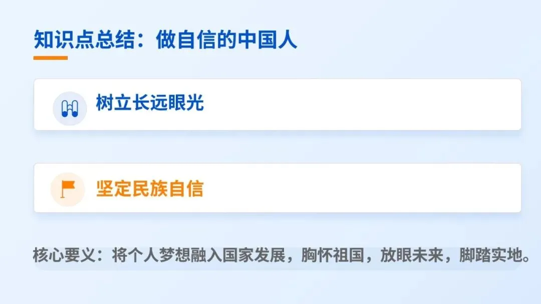 4.总结:个人自信汇聚成民族自信,民族自信支撑国家发展。