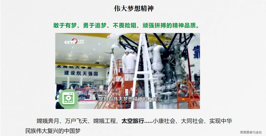 课堂结尾以两会主题片“中国精神”作为情境收束,让学生在团结奋进的精神号角中奋进“十五五”,引导学生在心灵上产生共鸣,在思想上深化理解,体悟中国精神的时代价值。旨在帮助学生正确认识时代大势,增强历史自觉与使命担当,自觉将弘扬中国精神、赓续红色血脉、肩负复兴重任作为新时代青年的行动自觉,实现课堂的思想升华与情感升温的统一。
