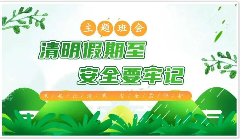 师:同学们,清明假期马上就到了。这既是缅怀先人的时节,也是大家放松身心、亲近自然的好机会。但安全问题不容忽视,假期出行人流大,路况复杂,用火场景增多。为了让大家都能平安过节,今天我们召开这场清明假期安全班会,一起聊聊出行、祭扫、居家等各方面的安全注意事项,希望每位同学都牢记于心,度过一个安全文明的清明假期。