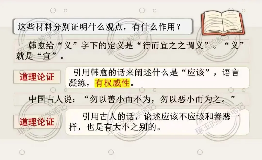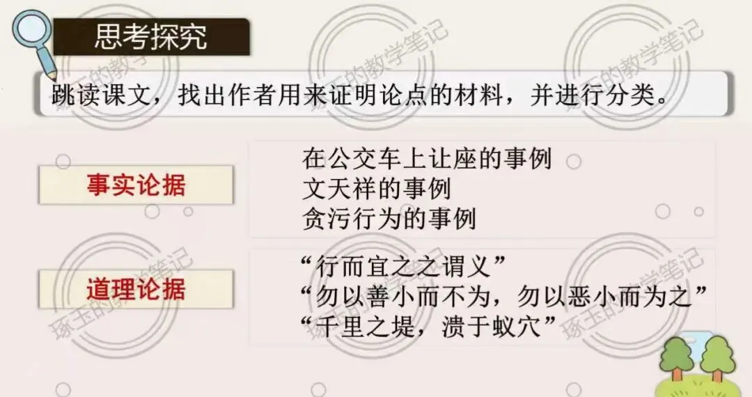 2. 识别事实/道理论据,理解举例/道理论证的作用,掌握本文的说理特点。