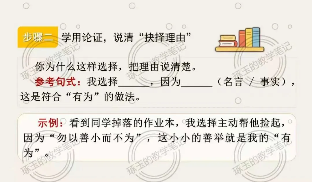 闯关目标:结合生活情境明辨“为与不为”,用论证思维说清抉择理由,提炼践行原则,解锁实践之钥