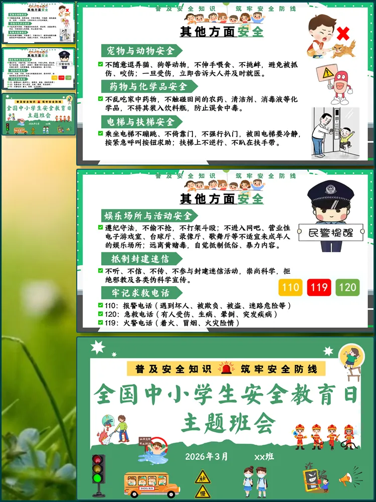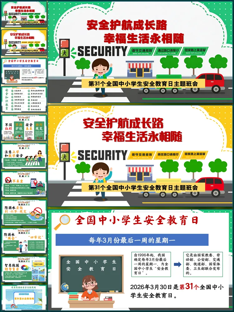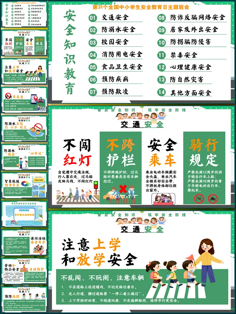 图片展示:【8676】《安全护航成长路》全国中小学生安全教育日主题班会PPT课件+教案+视频(共45张ppt)