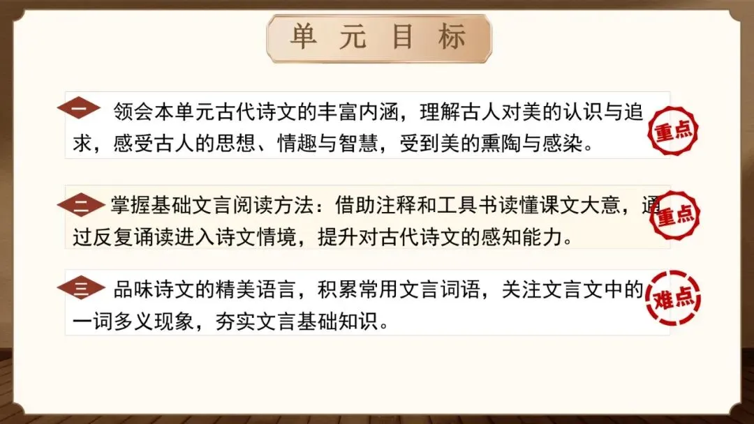 文化传承:通过写读后感,加深对本单元古诗文经典的理解与感悟,增强文化认同感;养成读思结合、持续阅读、乐于分享的良好习惯,弘扬中华优秀传统文化。