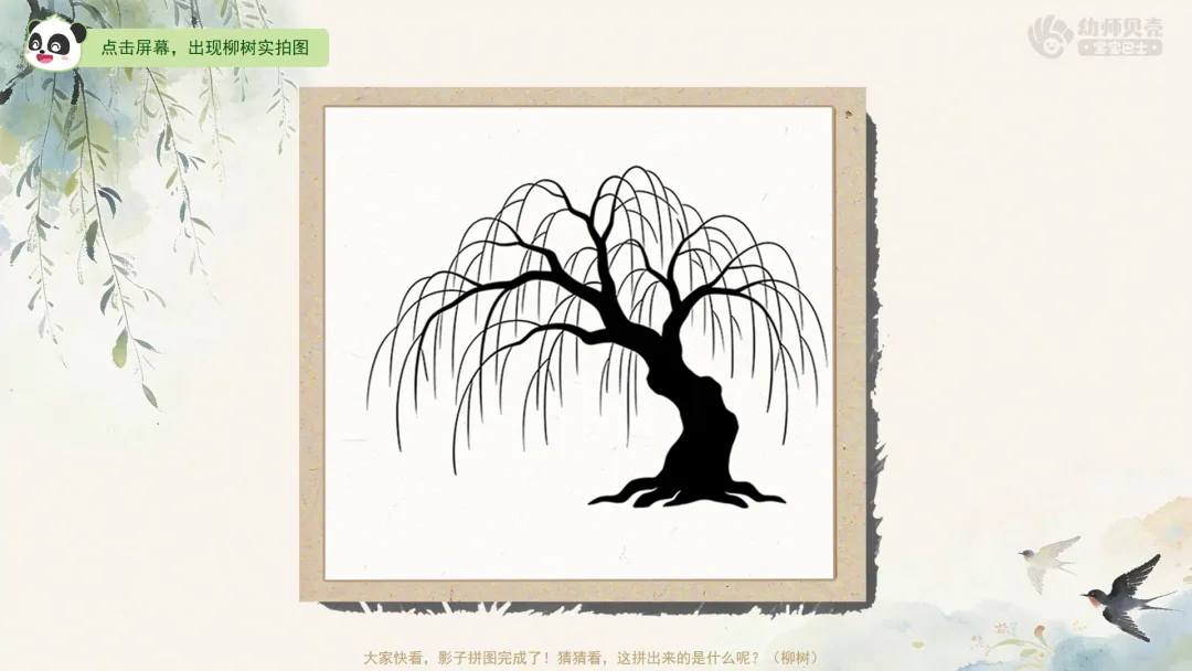 ——大家快看,影子拼图完成了!猜猜看,这拼出来的是什么呢?(柳树)