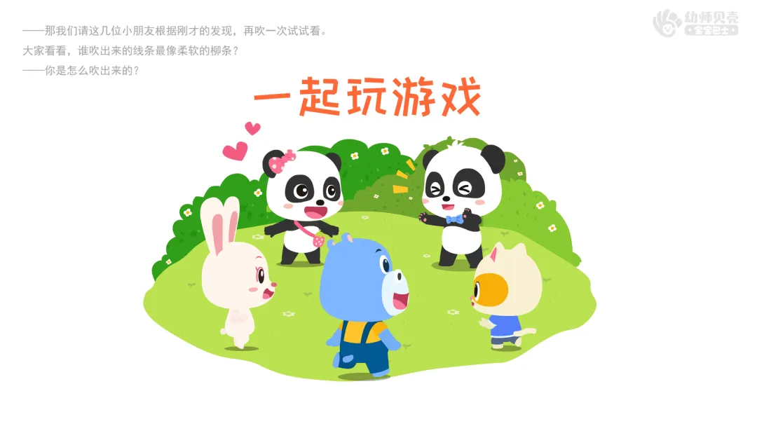 ——那我们请这几位小朋友根据刚才的发现,再吹一次试试看。大家看看,谁吹出来的线条最像柔软的柳条?