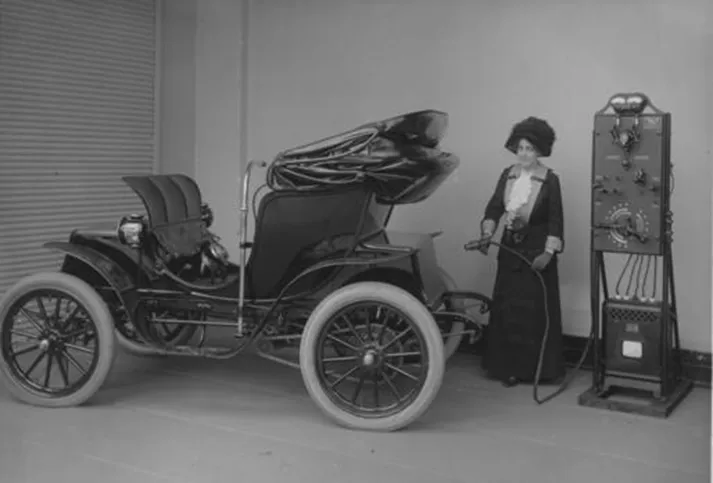 今天讲授的铅酸蓄电池历史同样悠久,已经问世170多年,比锌锰电池还早了十来年。而且,铅酸蓄电池同样启发了当今能源电化学的一个热点:铅炭电池。1881 年,法国工程师特鲁夫制造了一辆用铅酸蓄电池供电的电动车,时速15 每小时公里(是的,和校园里对电动自行车的限速一样)。这辆车被认为是世界上第一辆电动车,比德国的奔驰先生发明汽车还早了四年。1900 年,欧美出售的汽车中,内燃机汽车占22%,电动车占38%,剩下的份额是蒸汽机车。然而1920 年后,电动车却逐渐从公路上消失了。
