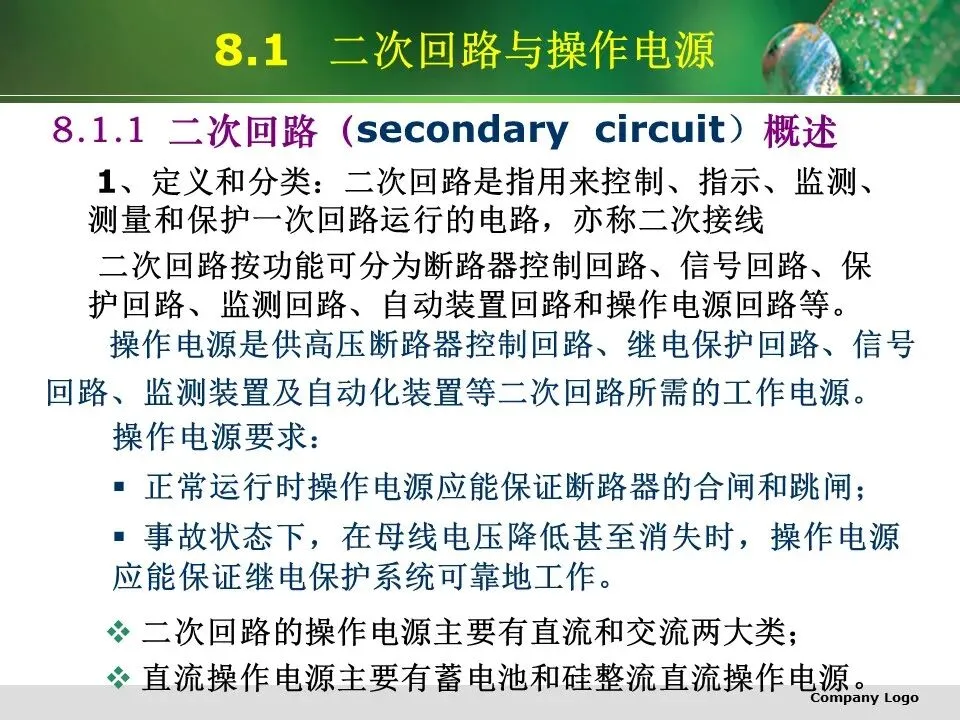 操作电源是供高压断路器控制回路、继电保护回路、信号回路、监测装置及自动化装置等二次回路所需的工作电源。