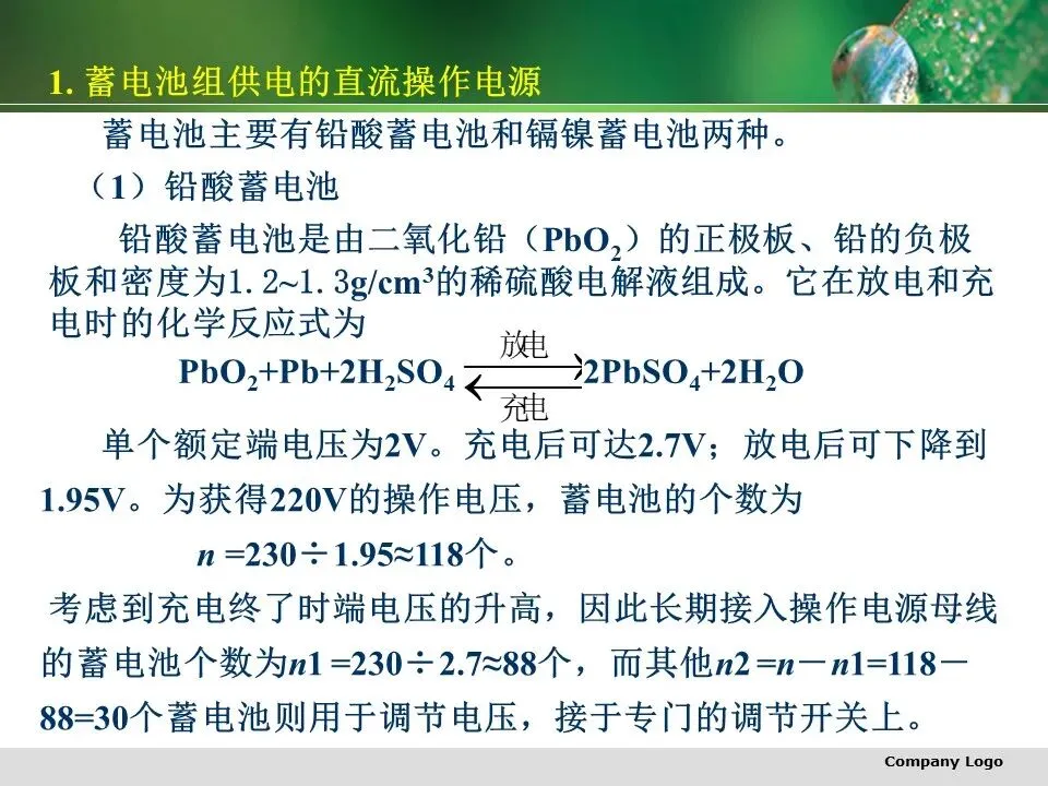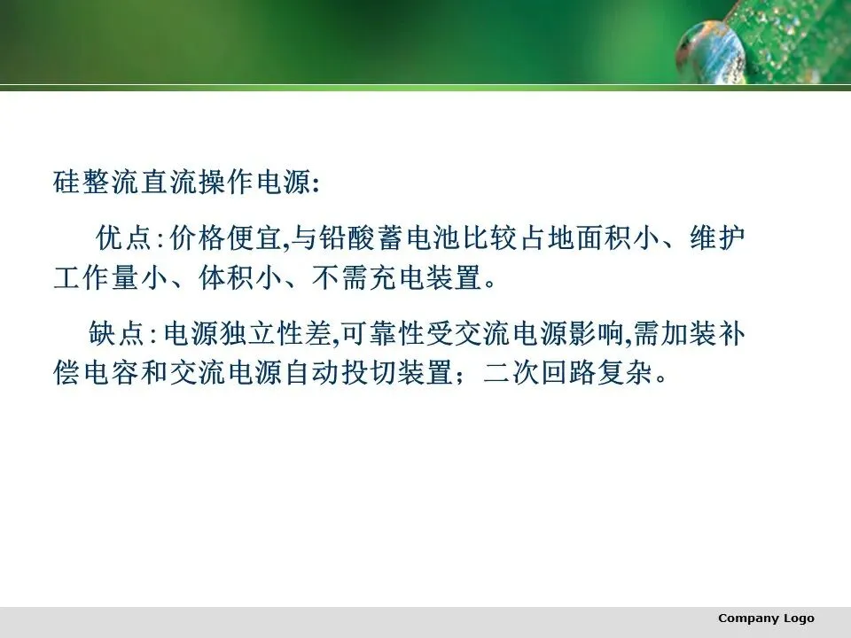 直流操作电源主要有蓄电池和硅整流直流操作电源。