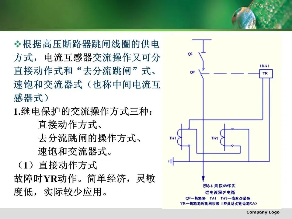 (2)一次接线简单且断路器台数较少的10(6)kV变电所,可选用交流操作电源。采用普通交流操作电源时,断路器应采用弹簧储能合闸和去分流合闸的操作方式。