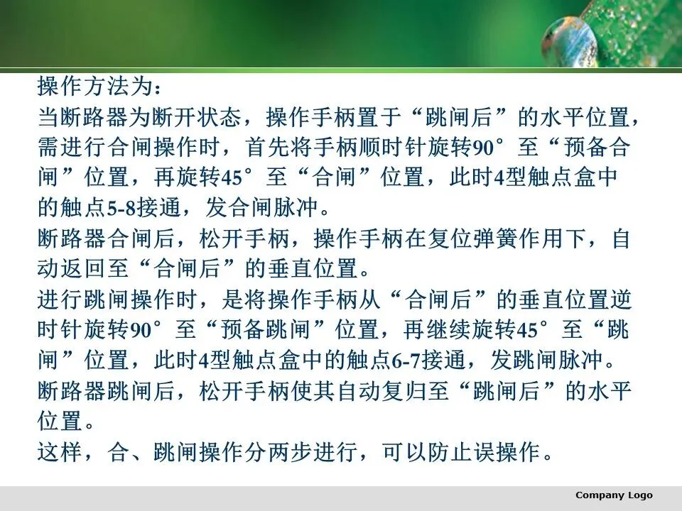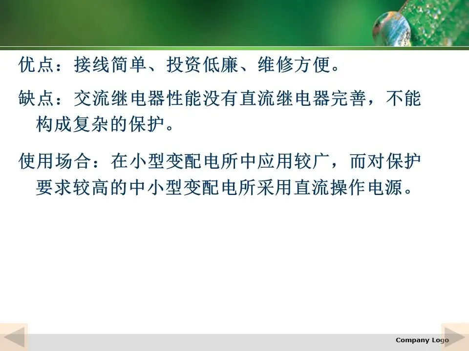 配电所的操作电源应独立可靠,容量足够,既要满足正常情况下的信号、保护、自动装置、断路器跳合闸等二次回路的的工作需要,又要保证事故状态下继电保护动作与断路器跳闸的可靠要求。
