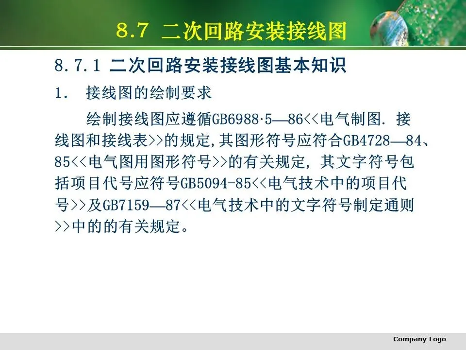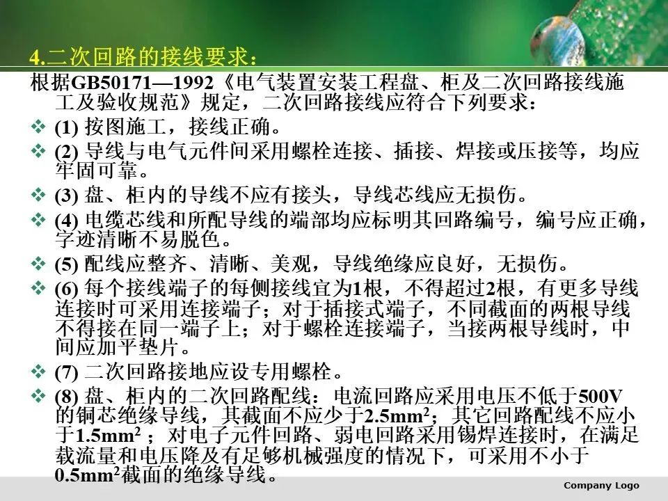 二次回路图主要有二次回路原理图、二次回路原理展开图、二次回路安装接线图(包括屏背面接线图、端子接线图等)。