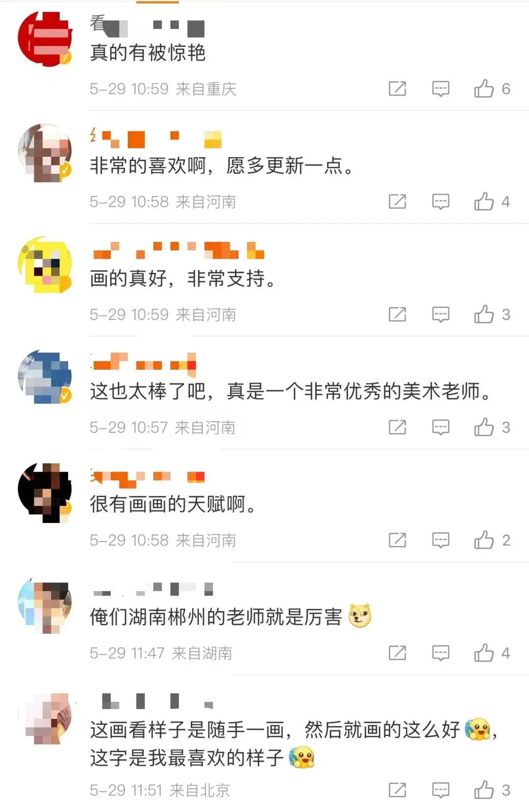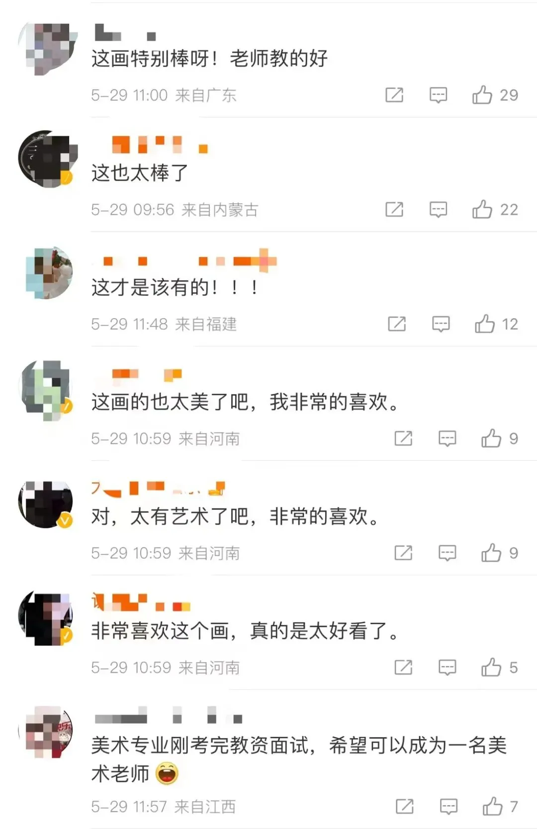 谢贝说:“美术课需要给学生作示范,在备课的时候先画出来,就可以更快地抓住重点和难点,在讲解的时候可以更细致一点,也就能让学生更容易掌握。上好美术课并不是希望学生一定要成为画家,而是要培养学生的审美能力。而且画画可以提高学生的专注力、观察力、表现力、创造力。”