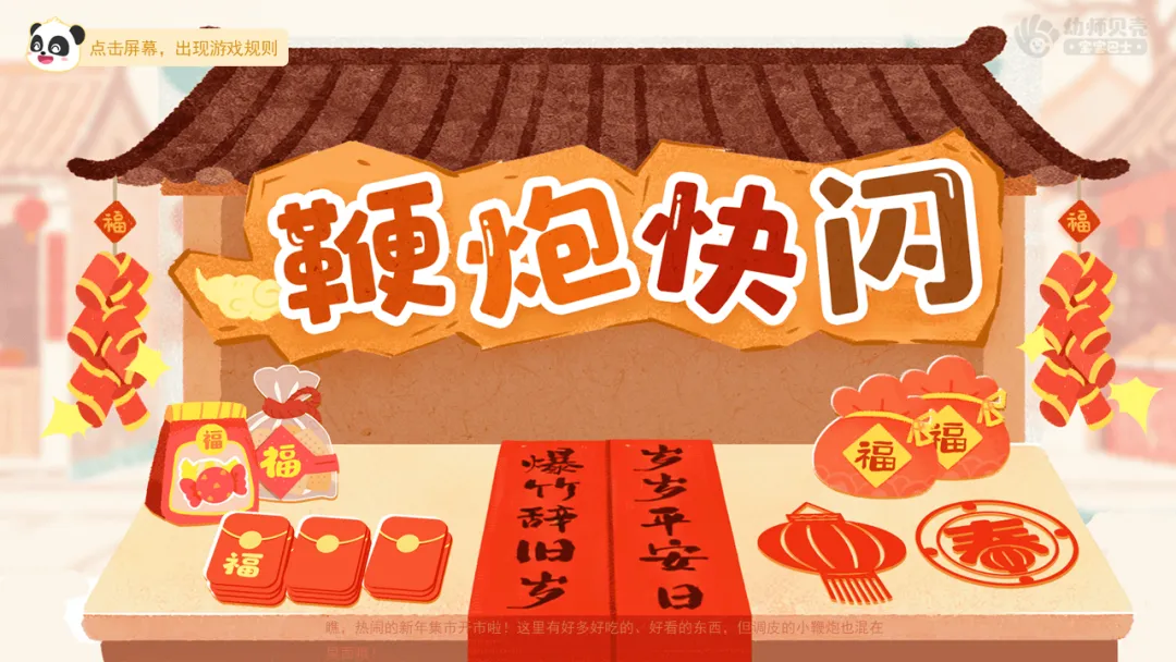 ——瞧,热闹的新年集市开市啦!这里有好多好吃的、好看,但调皮的小鞭炮也混在里面哦!