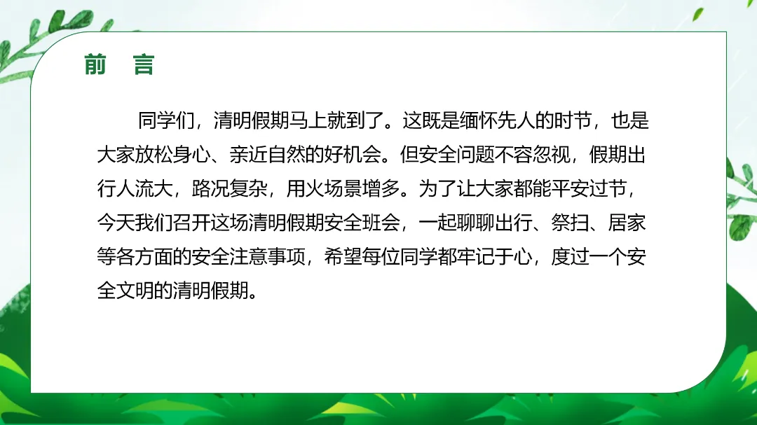 当前位置:首页>课件>清明节主题班会课件第二套安全问题PPT《清明节假期至,安全要记牢》