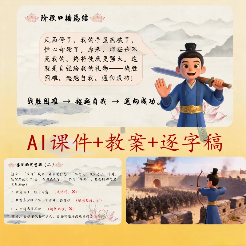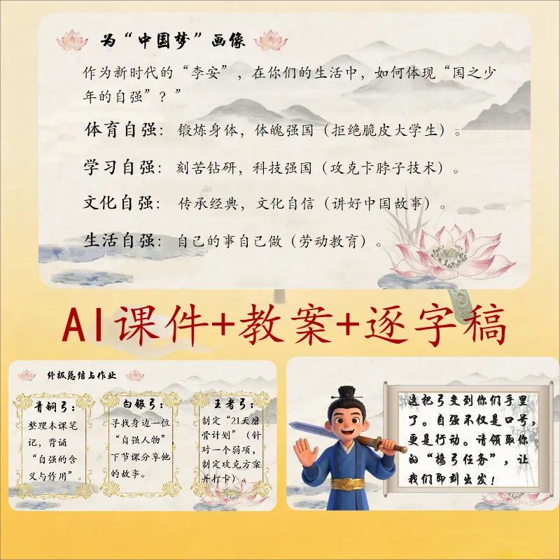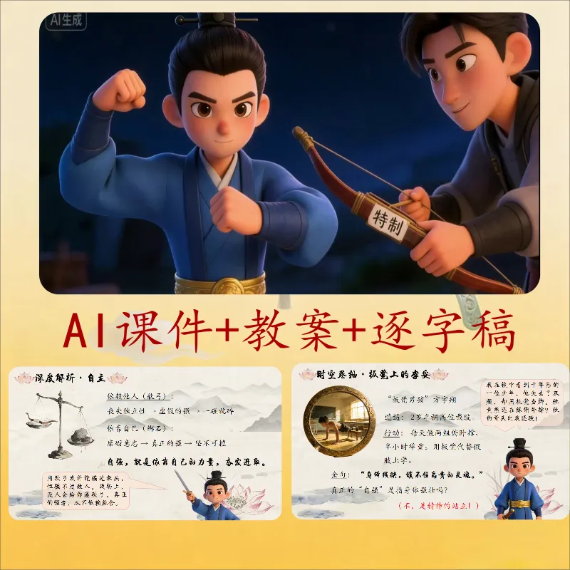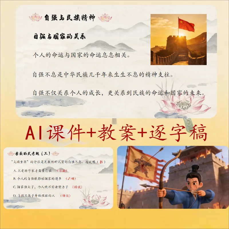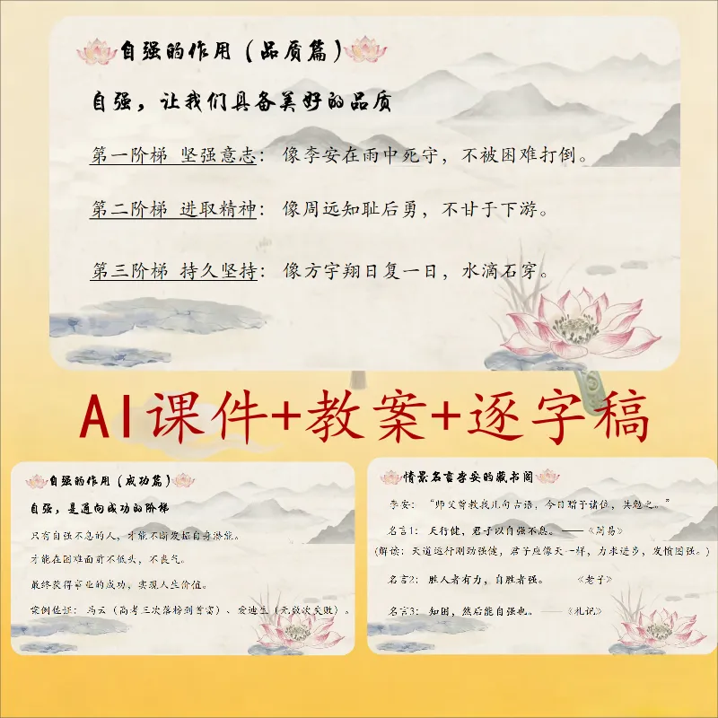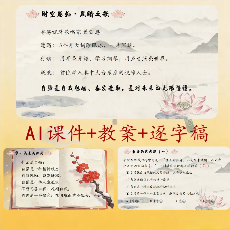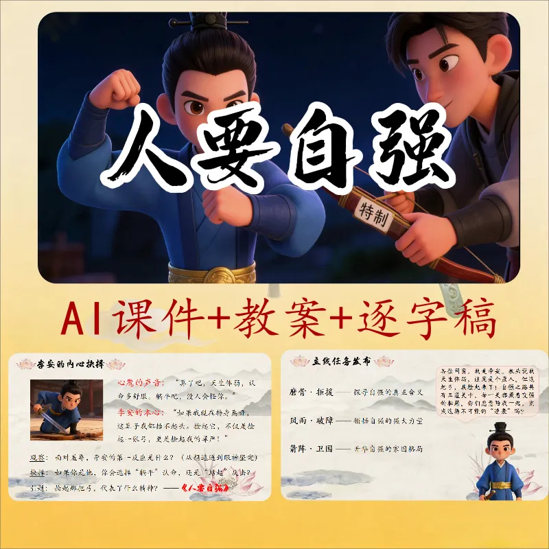 >七年级道法ai赋能公开课《人要自强》课件+教学设计+逐字稿!公开课上这个准没错,需要老师可以拿去用