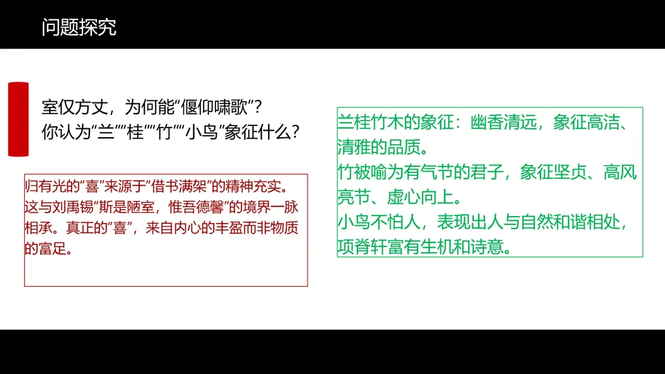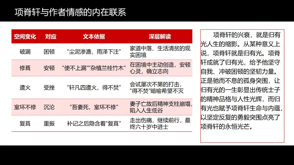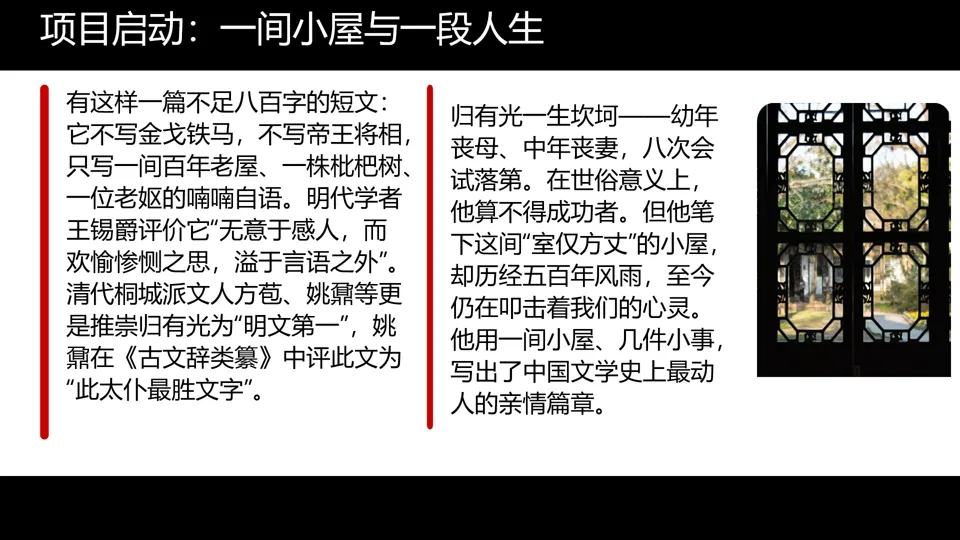 同学们,让我们回到项目开始时的问题:归有光如何用一间小屋承载半生悲喜?