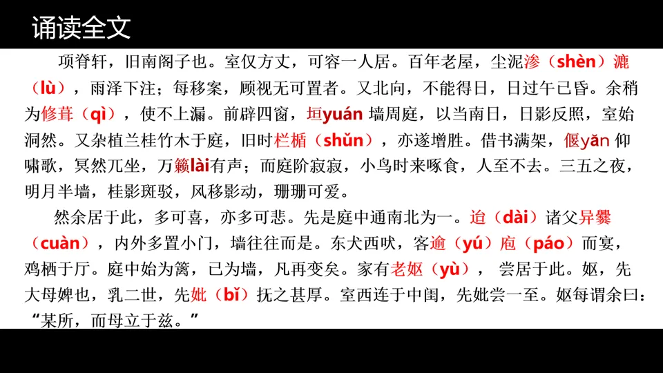 【活动四】初读文本:感知项脊轩