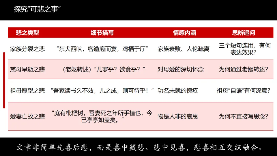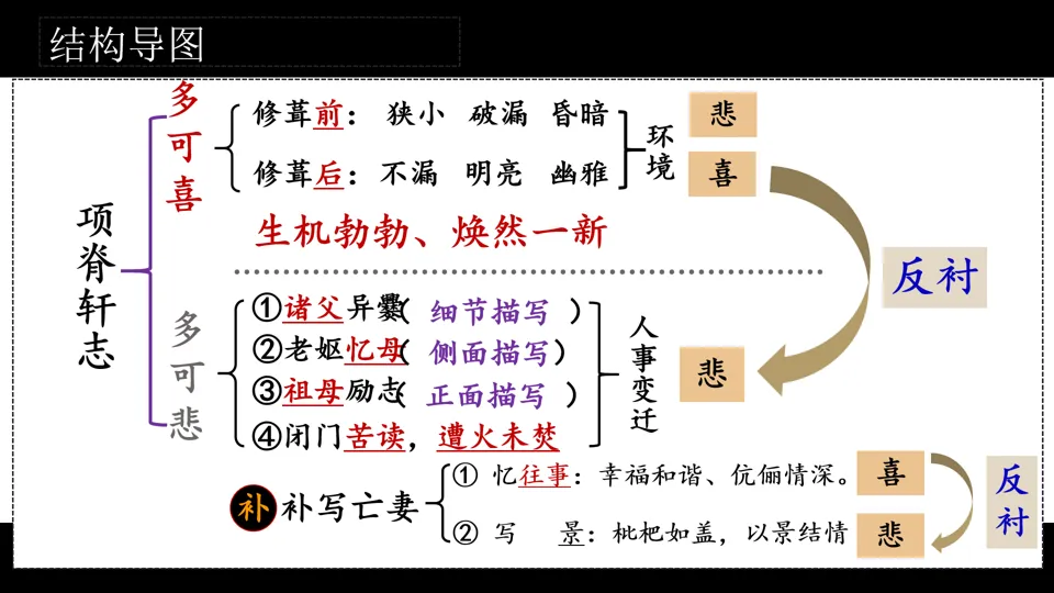 第二辑·项脊轩中的悲与喜:悲喜情感梳理+重点细节分析+枇杷树意象赏析+“言之妙”语言特色分析