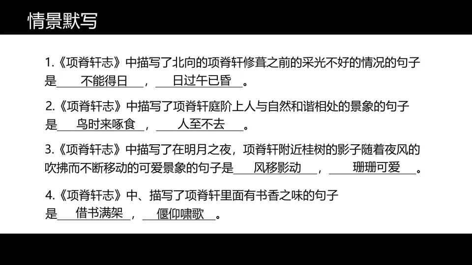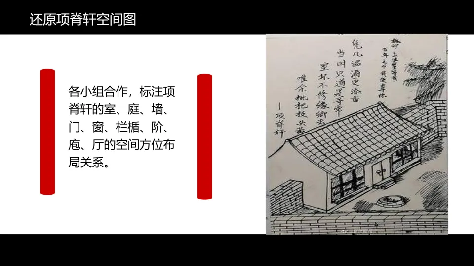 空间还原图(1分钟):解说项脊轩空间特点及命名含义