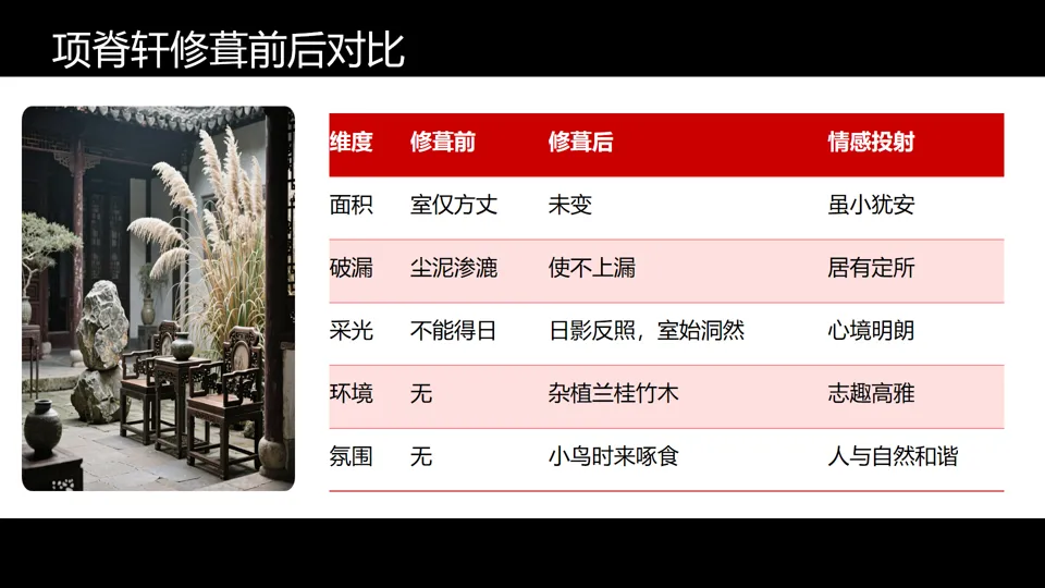 第一辑·项脊轩空间还原图:空间布局图+修葺前后对比表+四层空间层次解读