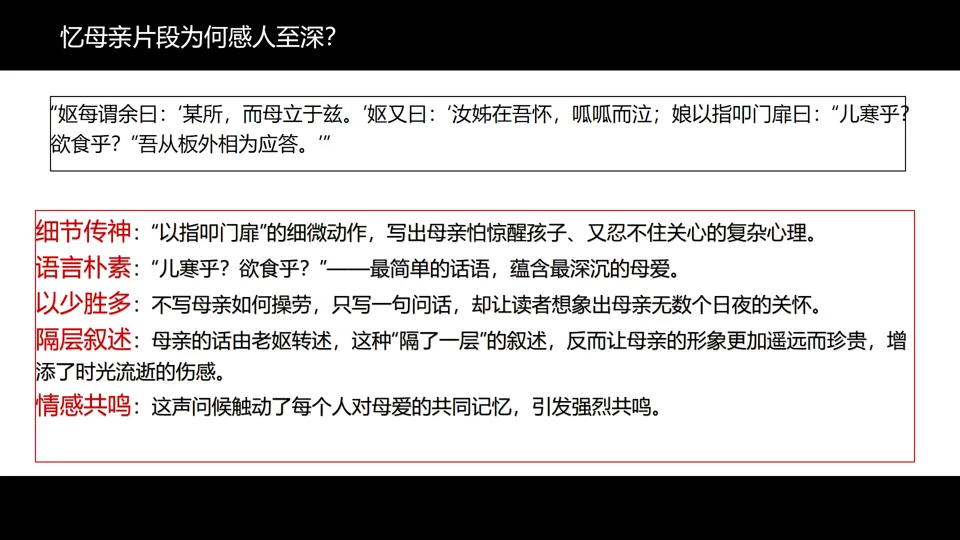 归有光如何把一件小事写得感人至深?我们可以拆解为三个步骤: