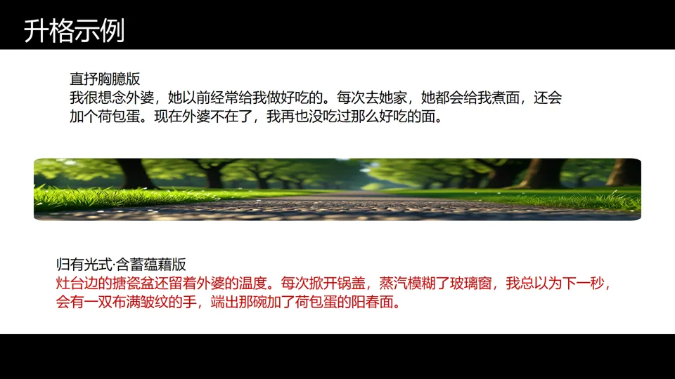 【升格示例:从“直抒胸臆”到“含蓄蕴藉”】