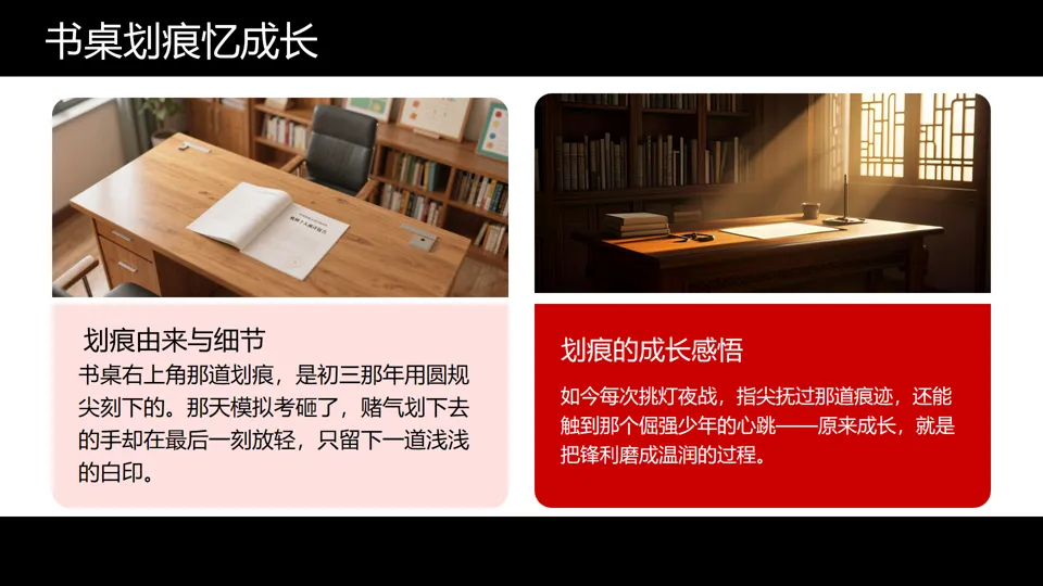 选项B·我的“心灵一隅”创意写作:选择一个承载你人生记忆的“物”(旧书桌、老照片、家乡的老树),写一段文字。