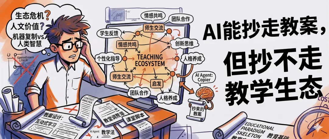 可以让AI学会教案的结构,但不能把教育的价值压缩成教案。可以接受内容越来越容易被复制,但更要主动把重心转向那些不会被轻易复制的东西——真实场景里的判断力,长期互动中形成的信任,以及把一群具体的人真正带入学习状态的能力。