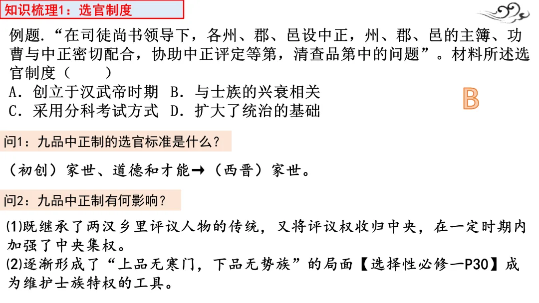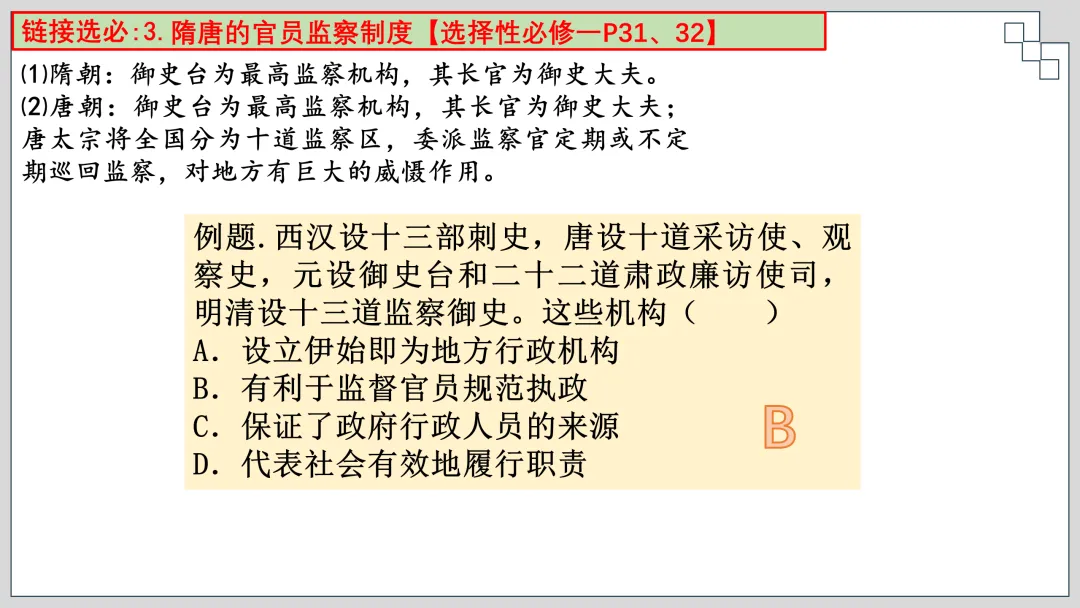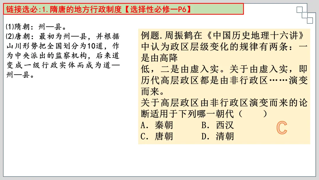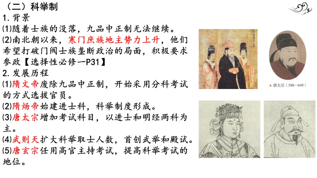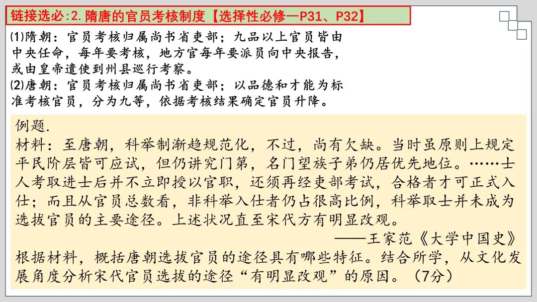 选考课件 | 通史小融通 第7节 隋唐制度的变化与创新(相关选必)