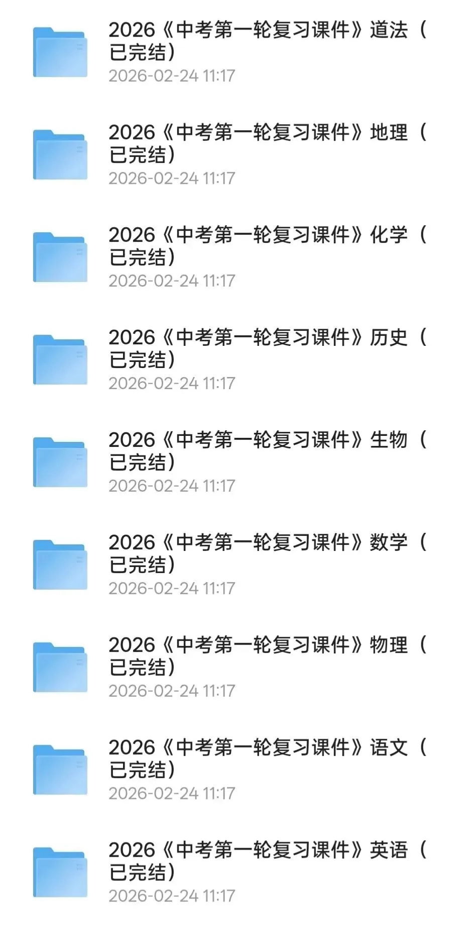 2026新《中考一轮复习课件》2026版试题分类、中考复习必备(语文/数学/英语/物理/化学/生物/道法/历史/地理),全科可免费下载