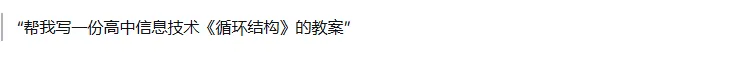 下面是我用DeepSeek跑出来的实际结果,以高中信息技术《循环结构》为例:输入提示词