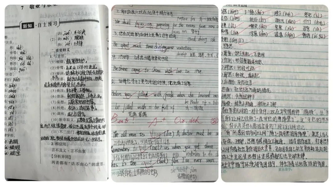 检查过程中,教师们详细记录各科作业完成情况、教师的作业批改情况和教师教案备写情况,找出优点与不足,并给出合理化的建议。