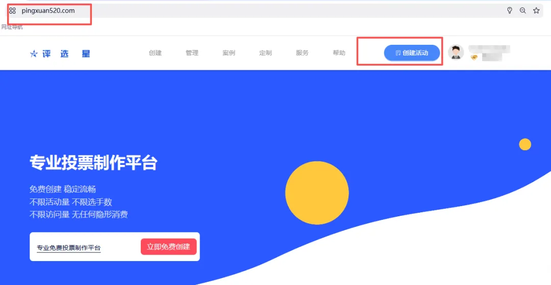1、打开浏览器输入评选星网址https://www.pingxuan520.com/进入官网,开始创建投票活动。