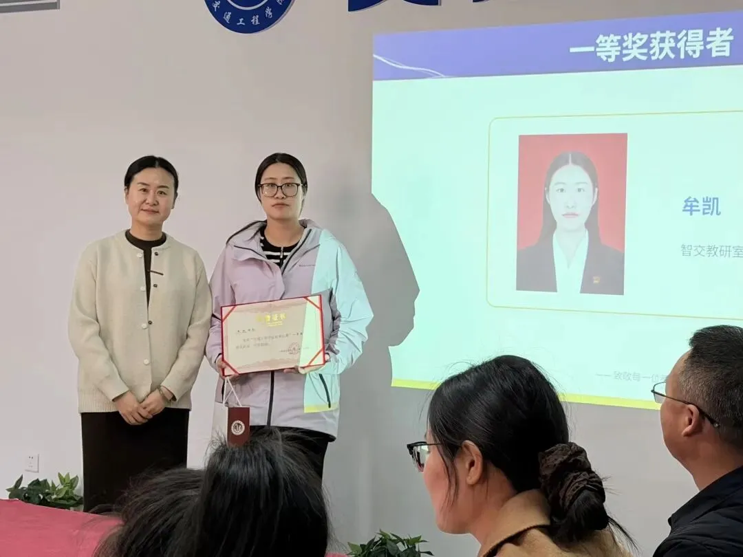 会议现场,常丽君副院长对本次教案比赛进行全面回顾与总结,系统梳理从筹备动员、专题培训、作品提交到严谨评审的全过程,充分肯定全体参赛教师的认真态度与优秀成果,并结合评分标准对优秀教案的亮点特色进行分享。随后公布获奖教师名单并举行颁奖仪式,学院领导班子为获奖教师颁发荣誉证书与奖品。其中,智交教研室牟凯老师荣获一等奖;道桥教研室范雪老师、交工教研室徐占杰老师荣获二等奖;道桥教研室赵海霞老师、智交教研室禹文静老师、道桥教研室单珂老师荣获三等奖。