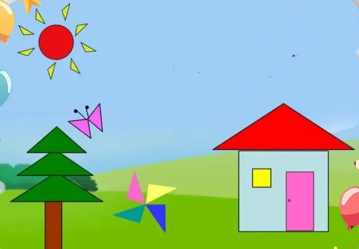1、师:"图形宝宝的房子太小了,要搬到新的大房子里。让我们一起来看看,图形宝宝的大房子是怎么样的?"(引导幼儿观察房子里的标记)
