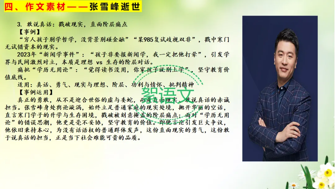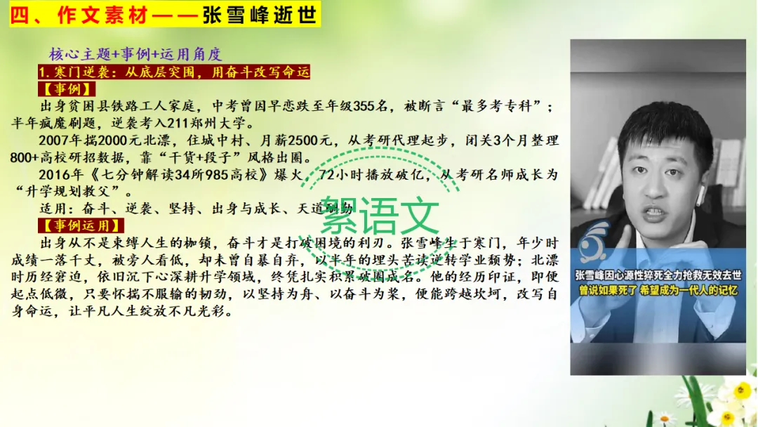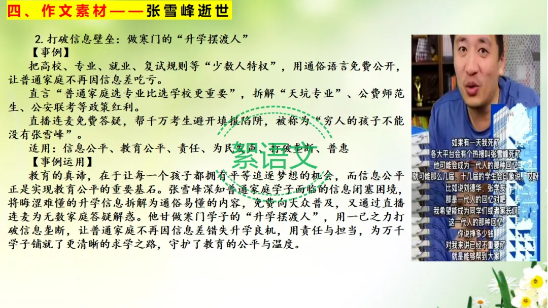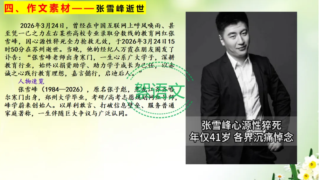 四、作文素材——胡雪峰老师逝世