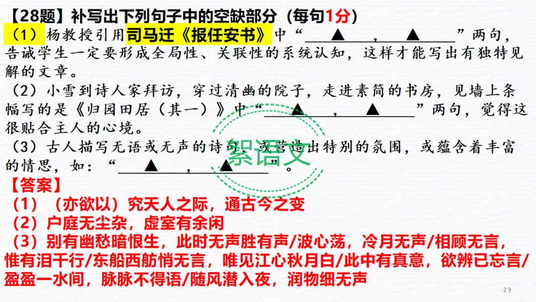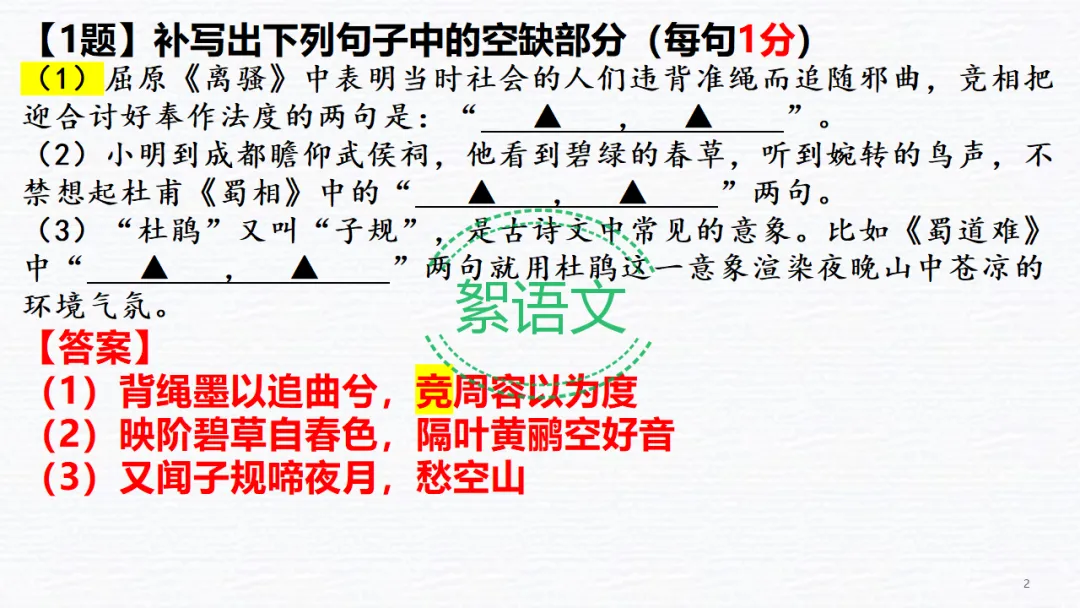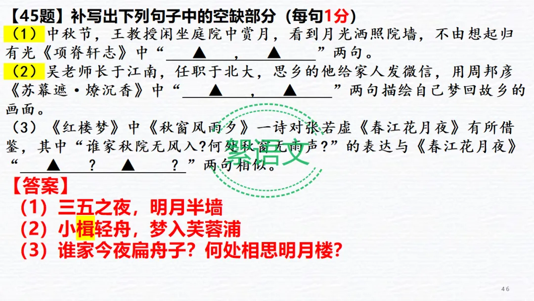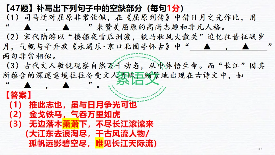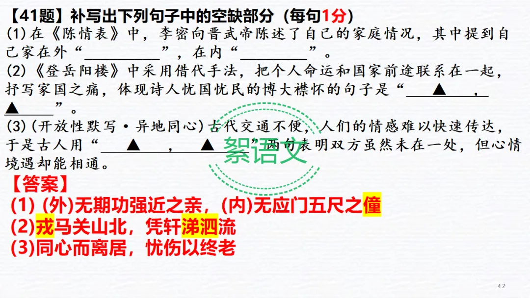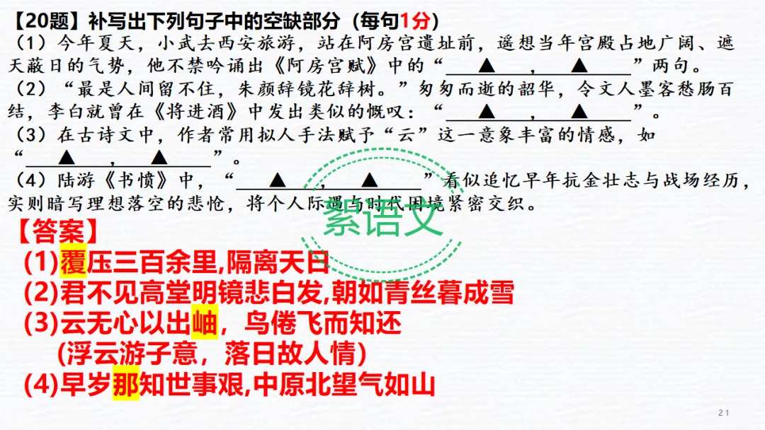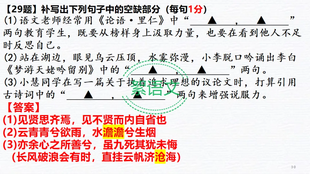2026届高三语文二模名句情境默写练习(学生版附答案)