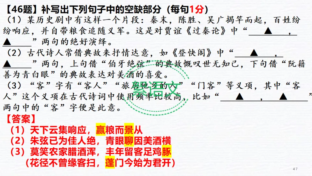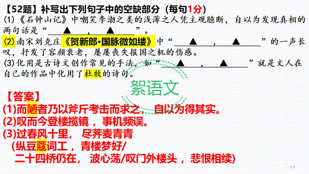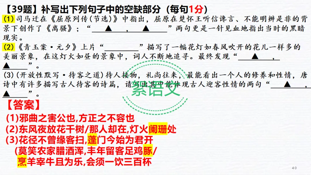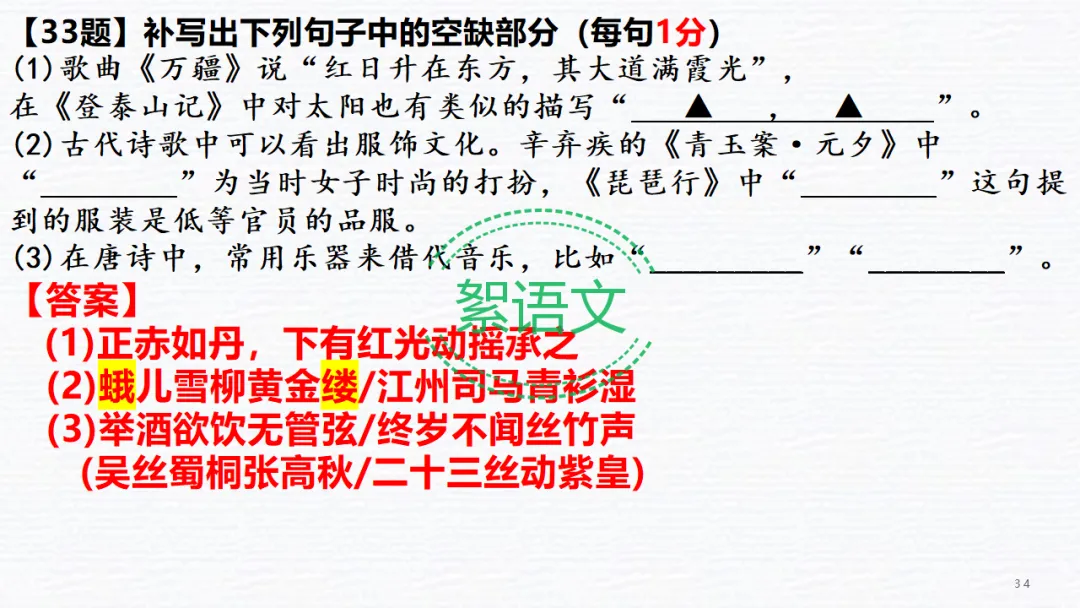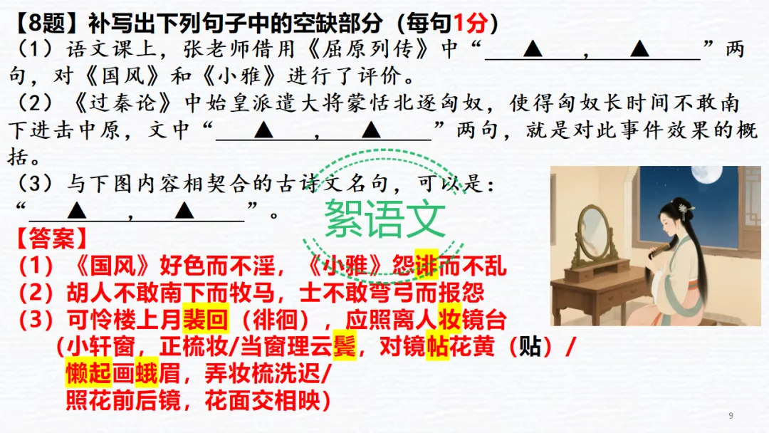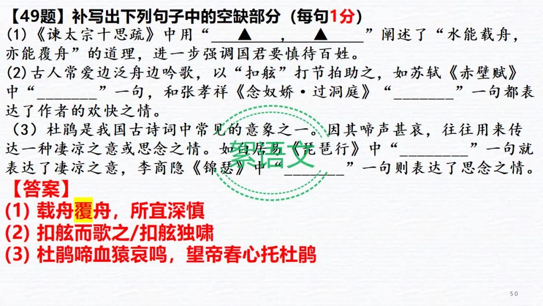 2026届高三语文二模名句情境默写练习(学生版附答案)