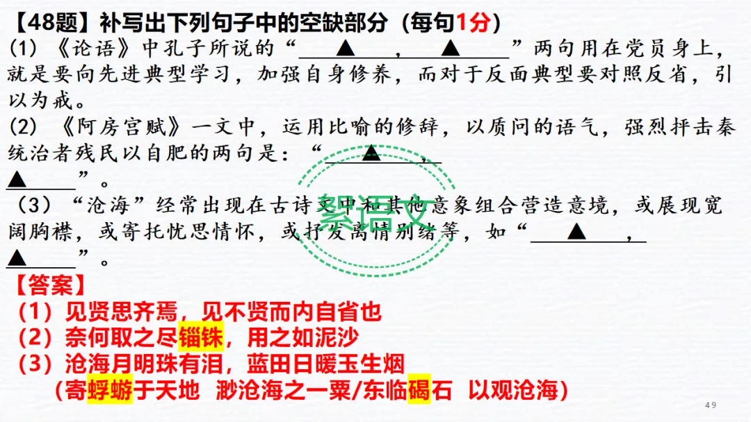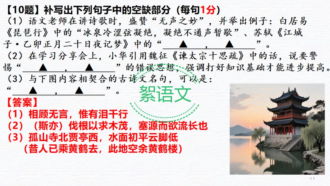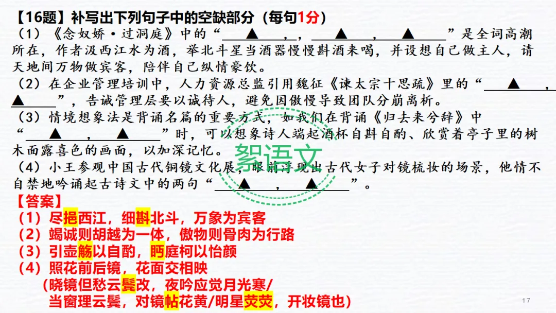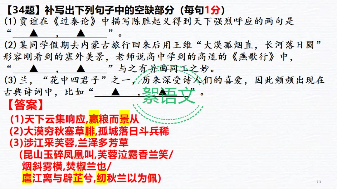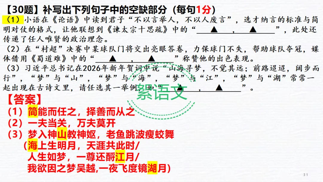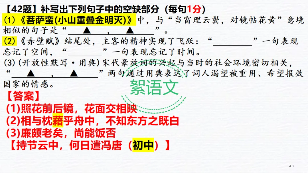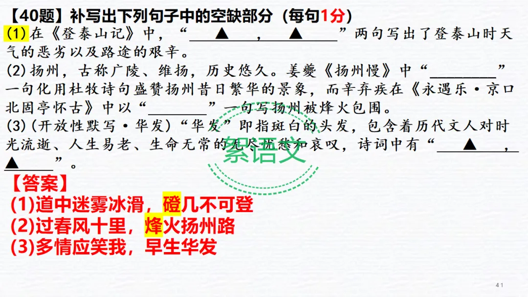 2026届高三语文二模名句情境默写练习(学生版附答案)